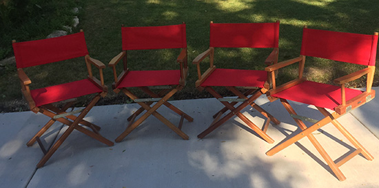 I picked up four directors chairs at a thrift store for $5 each. They didn’t have any seat backs or bottoms. And I spent the summer terrified to try to make my own patterns and sew up my first upholstery project.